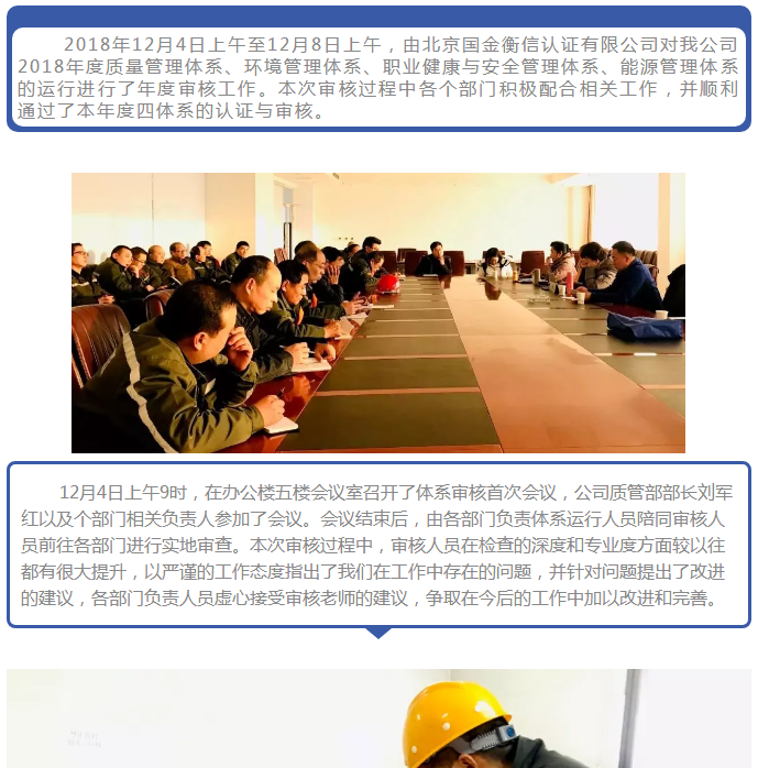 新聞摘要:鑫匯公司順利通過2018年度四體系認證審核